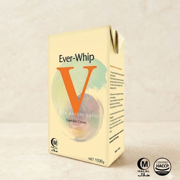 Ever Whip Vanille Vegetable Cream 1030g is a high-quality non-dairy whipping cream ideal for baking and dessert preparation. It whips easily to create a smooth, fluffy, and stable cream that holds its shape perfectly for cake frosting and decoration.